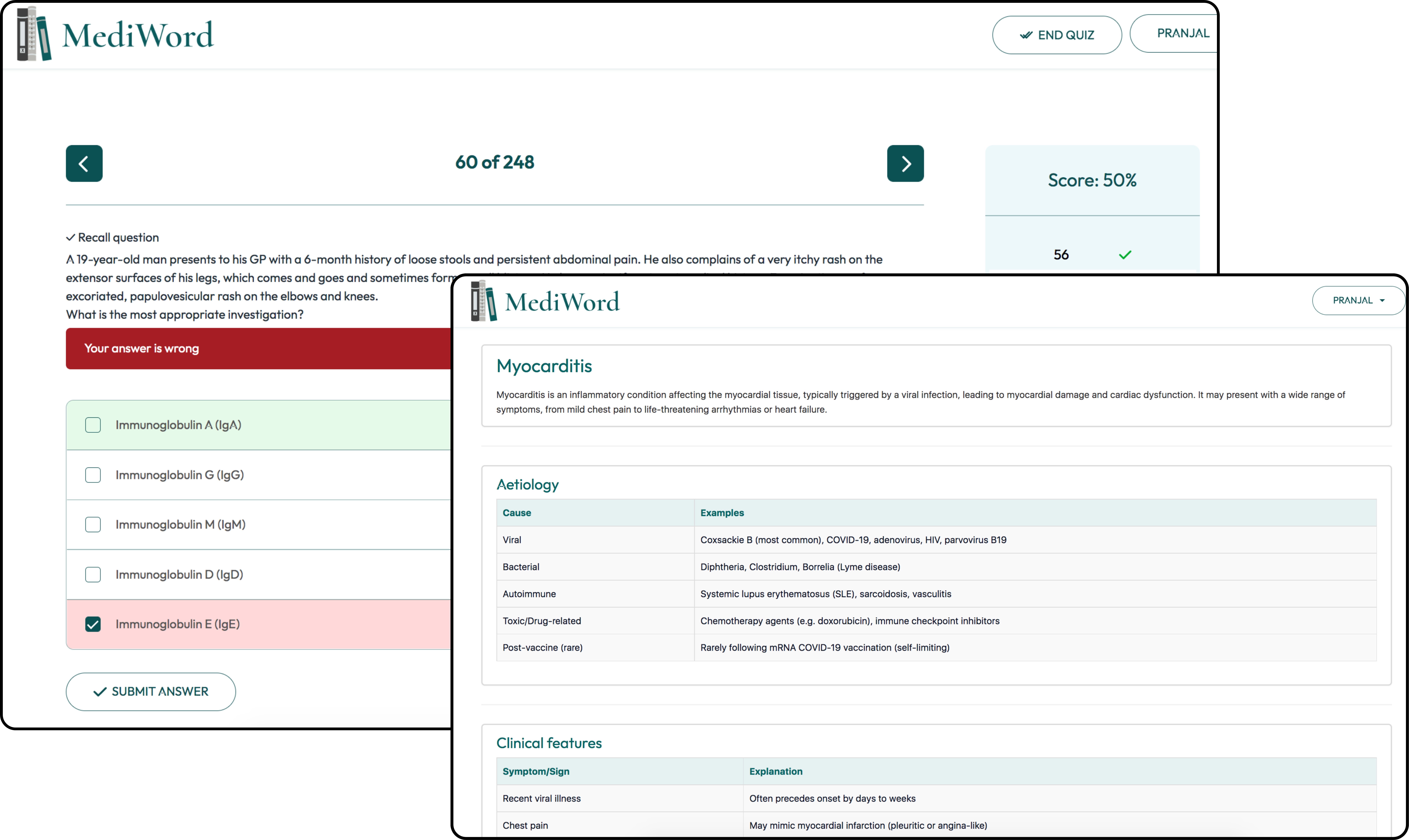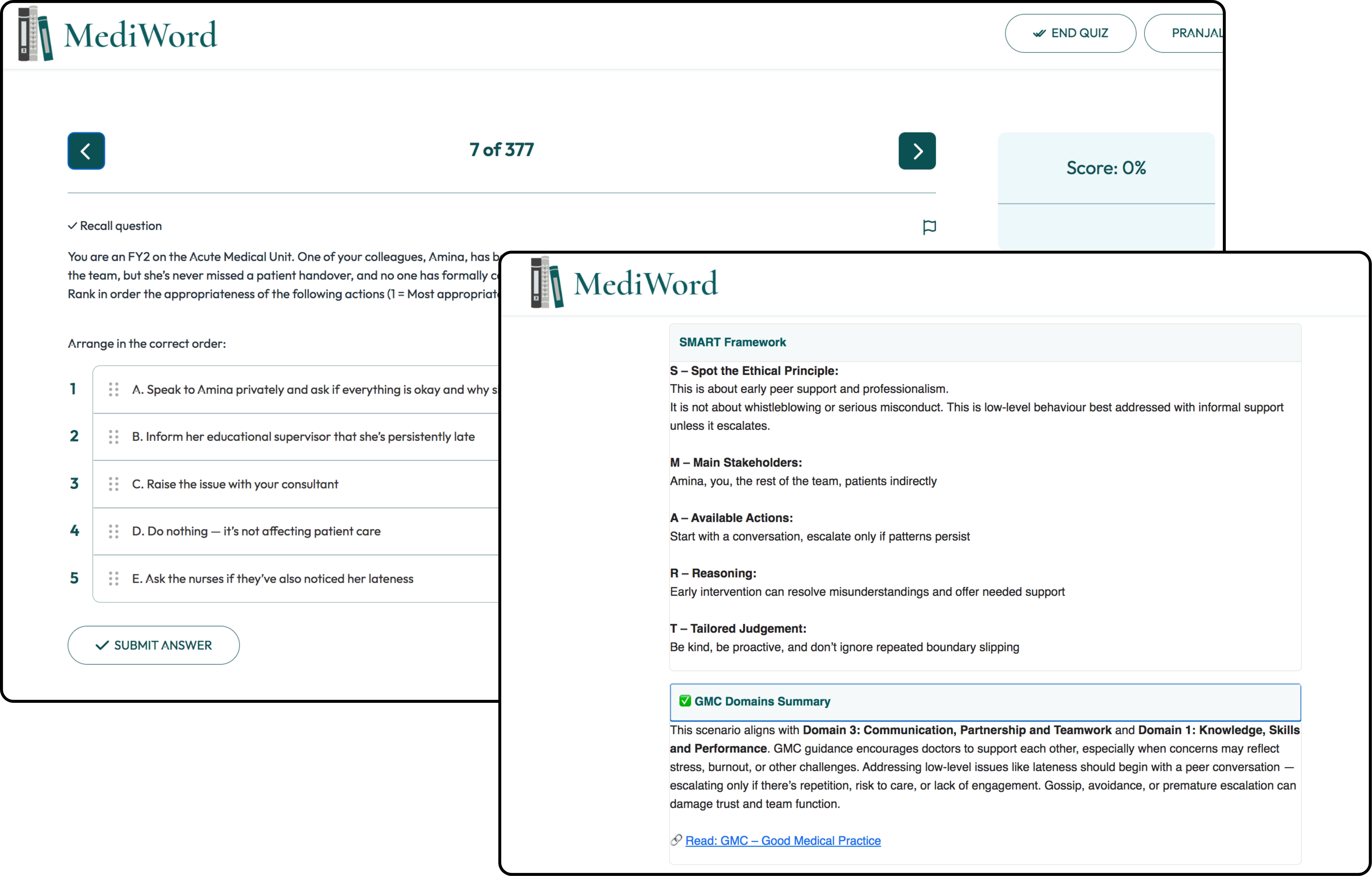 MediWord is the focused question bank and revision hub for junior doctors preparing for the MSRA and UKMLA — built by expert junior doctors, combining clinical insight with exam knowledge to help you excel where others generalise.